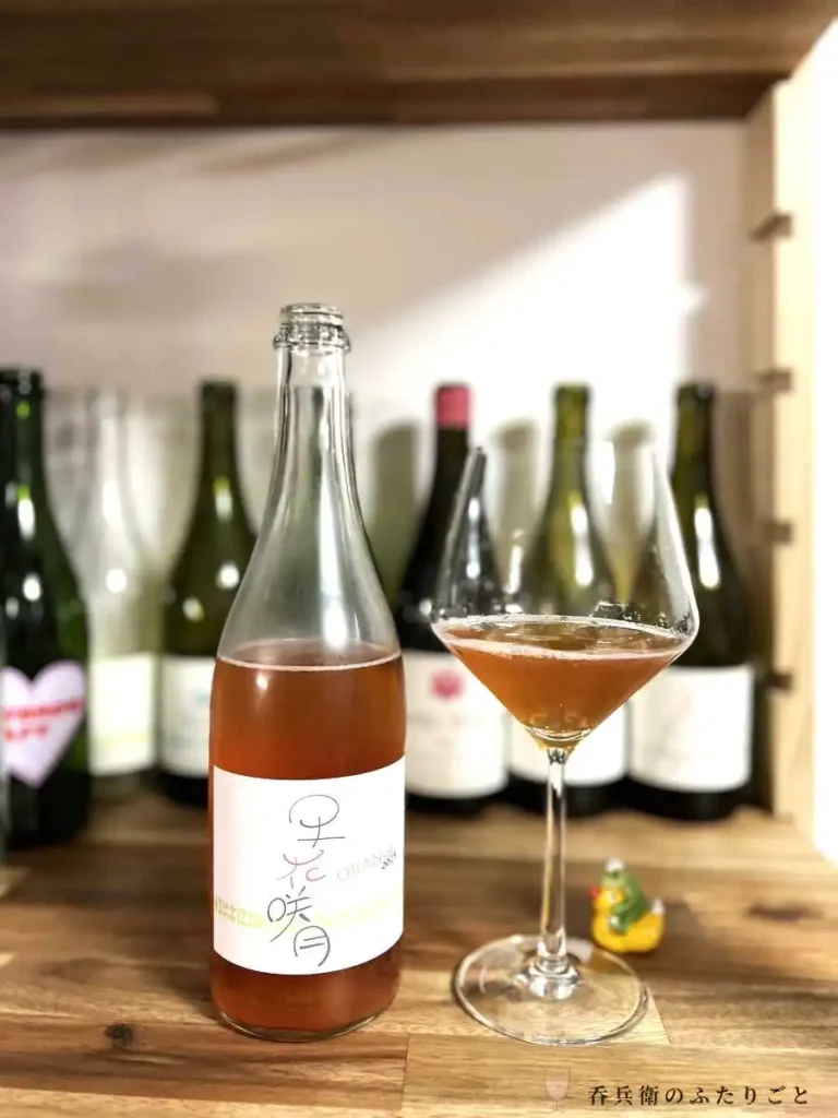 過去の早花咲月Roseよりもキャンベル割合が低く、ナイアガラ醸しの黄色味がでたのでサブタイトルを「ORANGE」としました。味わいとしてもナイアガラが中心。呑み口のとろみ感と泡が相まって独特の口当たりがあります。アルコールも低く、暑い時期に合う軽い飲み物になりました。
