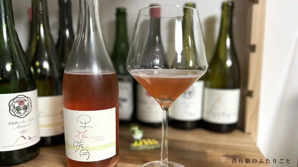 (2026.2月)キャンベルが少なかったこともあり、ロゼというよりオレンジな色合い。独特の梨とあんずを足して2で割ったような香りに少しだけフレッシュなプルーン。いわゆる甘いナイアガラ香は控えめです。泡は荒っぽい立ち方に見えますが、口当たりはキレイ。少しの渋さと酸が締めくくります。